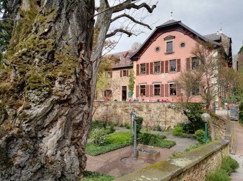 Sollte ich jemals Schriftstellerin werden wollen, würde ich mich als Turmschreiberin in Deidesheim an der Pfälzer Weinstraße melden. Das Thema kann der Schreibende dabei selbst wählen. Er wird vom Vorstand der Stiftung zur Förderung der Literatur in der Pfalz unter bekannten Autoren ausgewählt. 4 Wochen erhält er freien Aufenthalt in Deidesheim um seine Geschichte zu verfassen. Zeit genug um sich über die Stadt, die Pfalz, den örtlichen Menschenschlag und den hier angebauten Wein zu informieren. Dazu erhält der Texter täglich zwei Liter Wein. In der Regel ist es ein Riesling. Deidesheim ist ja nicht arm an Wein. Für das Buch, das aus seinen Eindrücken während des Aufenthalts entsteht, erhält der Turmschreiber ein paar tausend Euro und kann es im Verlag seiner Wahl veröffentlichen. Alle Schriftsteller residieren – zumindest symbolisch – in einem runden Türmchen aus solidem Pfälzer Buntsandstein. Dieses steht im Herzen des Städtchens – im Schlossgarten. So entstanden besondere Texte mit Namen ‚Wenn der Wein niedersitzt schwimmen die Worte empor‘ oder ‚Die Weingeister und ihre Gefährten‘.