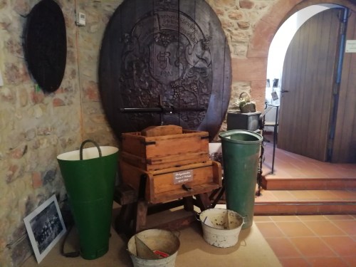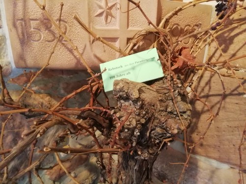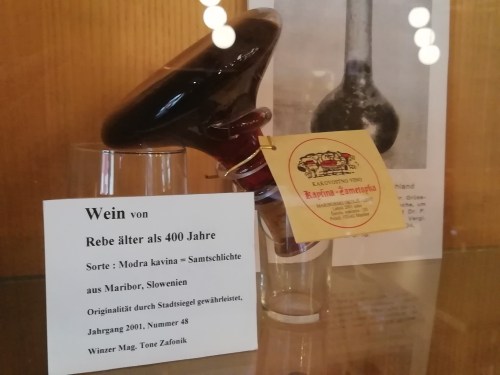 Die Begründer des Weinbaus waren oftmals gottgleiche Herrscher. In Indien die Fruchtbarkeitsgöttin Schiwa, in China der kulturschaffende Weise Fu-Hu, in Ägypten der Gott Osiris, bei den Griechen Dionysos und bei den Römern Bacchus. Je intensiver sich ein Mensch mit Wein beschäftigte, desto ausgeprägter und herrlicher gestaltete sich die Würdigung und Verherrlichung des Rebensaftes in Dichtung, Malerei und Musik. Von Anbeginn seiner Geschichte war dieser ein vorzügliches Heilmittel. Auch heute noch sind die gesundheitsfördernden Wirkungen des maßvollen Weingenusses bekannt. Im Keller des Museums befinden sich alte Weinfässer und zahlreiche verschiedene Weingläser und –flaschen. Hinter einer Glasscheibe lässt sich ein mehr als 400 Jahre alter Wein aus Slowenien begutachten. In einer gläsernen Karaffe liegt die Flasche kopfüber da. Daneben steht ein echter 108 Jahre alter Rebstock. In den Regalen stehen Weinkrüge, Gebrauchsgeschirr und Weingläser aus dem 14., 15. und 16. Jhd.
