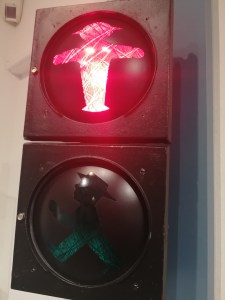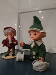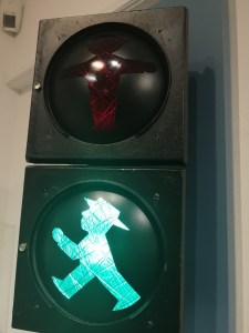 Ich schaue mich in der Eingangshalle um. An der Wand blinken die Ampelmännchen in Grün und Rot. In einem letzten Aufbäumen der ehemals ostdeutschen Bevölkerung sollen diese in den Städten der früheren DDR im Straßenverkehr erhalten bleiben, zum Beispiel in Berlin. In einer kleinen Vitrine sitzen daneben die Sandmännchen von der BRD und der ehemaligen DDR. Eines in grüner Kleidung, eines in Rot. Ich stehe vor der erfolgreichsten Integrationsfigur von Ost- und West. Hier beginnt meine Privatführung. Ich bin heute die einzige Besucherin. So habe ich den Museumsmitarbeiter ganz allein für meine Fragen. Er deutet auf die Sandmännchen von Ost und West. ‚Um 18:45 Uhr immigrierten 95 Prozent der Bevölkerung von der DDR in Richtung ARD und ZDF.‘ erklärt er mir. ‚Gleichzeitig machte sich die Hälfte der BRD-Bevölkerung auf, um das DDR-Sandmännchen zu sehen. Anhand der Beschreibung des Sandmännchens oder der Fernsehuhr (mit Punkt oder in der DDR mit Strich in der Mitte) konnte im Kindergarten bereits festgestellt werden, ob eine Ost-Familie Westfernsehen schaute. Was strengstens verboten war!‘