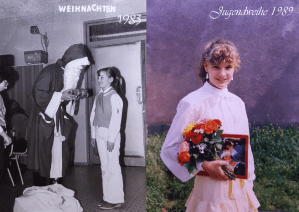 Und wie war es für sie, dass sie dort nicht so einfach hin konnte? „Das war total schade, auch dass wir keine Westverwandtschaft haben.“ führt sie aus. „Eine Freundin hat mir auch erzählt, ihre Oma wäre nach Kuba geflogen. Allein der Gedanke daran war total toll. Ich konnte mir ja nur ein exotisches Land vorstellen. Wenn man besonders gut war in der Schule, durfte man manchmal mit anderen Pionieren vereisen. Ein Mädchen aus meiner Parallelklasse ist z. B. mal nach Syrien. Ich wusste natürlich, dass man aus der DDR nicht ausbrechen darf, weil man dann erschossen wird. Flüchten ging nicht. Über die Mauer in Berlin darf man nicht drüber. Ich wäre natürlich gern, aber es war ja nicht möglich. Deshalb hab ich mich total gefreut, als die Grenze geöffnet wurde.“ Fluchtgeschichten hat sie kaum mitbekommen. In den Nachrichten kam dies nicht, die Menschen verschwanden einfach. „Wir hatten so jemanden nicht im Bekannten- oder Verwandtenkreis. Sonst hätte ich da vielleicht etwas bemerkt. Bei uns hatte auch niemand Probleme mit der Stasi. Die Bespitzelungen durch diese wurden mir auch erst nach der Grenzöffnung so richtig klar. Die Mauer gab es eben einfach. Ich bin so aufgewachsen und das war immer eine gegebene Sache. Einmal hatten wir eine Schriftprobe in der Schule. Auch unsere Hände wurden auf Farbreste kontrolliert. An ein Trafohäuschen waren Naziparolen geschmiert worden. Stell dir vor, das wurde in der ganzen Stadt gemacht! Alles wurde auf den Kopf gestellt bis der Übeltäter enttarnt war. Das würde es heute sicher nicht mehr geben.“ Sie pausiert kurz. „Ich wollte nie wieder zurück in die DDR. Freiheit ist nicht automatisch da, dessen sollte sich jeder bewusst sein. Frei zu sein ist ein besonderes Gut.“