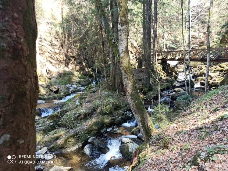 Hellgrün reckt sich das hoch aufschießende Gras auf den umliegenden Wiesen. Das glasklare Wasser des zierlichen Bachs am Wegesrand plätschert munter und rege. Eine übergroßes Schwarzwälder Klimahäuschen weist den Weg zum Naturerlebnis. Der Himmel leuchtet in strahlendem Hellblau. Ein paar kleine, watteartige Wolkenfetzen tummeln sich am Horizont. Über eine zierliche, hölzerne Brücke betrete ich die Schlucht. Ein überschaubarer Wasserfall rauscht einen schroffen Felsvorsprung aus geringer Höhe hinab. Die schmale Kaskade sprüht lebendig durchsichtige Kristalltröpfchen auf die Wanderpfade. Ich folge dem Flusslauf und genieße das fröhliche Zwitschern der Vögel. Dieser Ort strahlt eine angenehme Ruhe und Tonlosigkeit aus. Das weiche Moos auf den Waldpfaden dämpft meine Schritte, daher nehme ich das Rauschen des lebhaften Baches viel eindringlicher wahr. Umgestürzte Bäume liegen achtlos auf dem sprudelnden Flussbett. Zahlreiche kleine Felsen ragen unregelmäßig aus der Wasseroberfläche. Ich blicke hinauf in den Himmel und die dunklen, lichten Tannenzweige. Auch ohne Wanderweg zum Hirschsprung habe ich an diesem Ort einen besonderen Spaziergang gefunden. Das fließende, muntere Gewässer erzeugt einen strudelnden, perlend weißen Schaum. Entspannt setze ich mich auf einen Felsen am Ufer und beobachte die Strömung. So kann der Tag wohltuend zu Ende gehen.