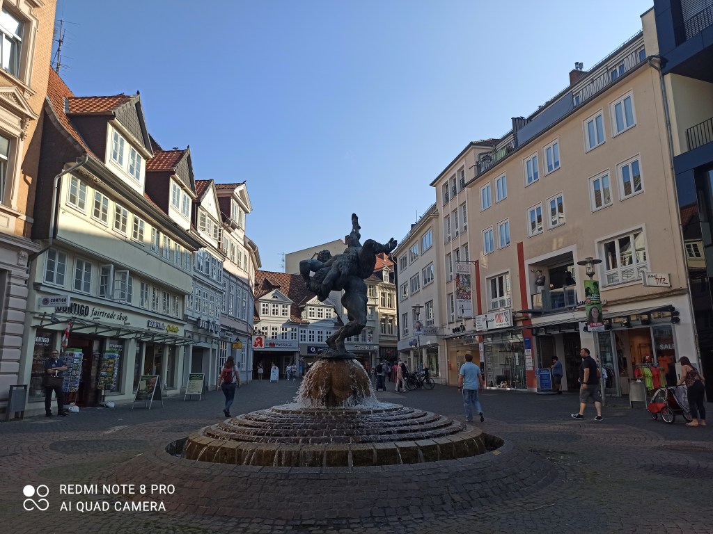 Die Stadtführerin bleibt vor einem Brunnen in der Innenstadt Braunschweigs stehen. Dann wendet sie sich an unsere Touristengruppe. Ihr ausgestrecktem Zeigefinger deutet auf die beiden kämpfenden Figuren. Sie beginnt zu sprechen, „Die meisten Touristen betrachten unseren Ringerbrunnen, ohne zu ahnen, dass er in der Öffentlichkeit für einen Kunstskandal gesorgt hatte. Im ersten Entwurf des Bildhauers Jürgen Weber waren die zwei Kämpfer nämlich nackt, das gefiel den Braunschweigern aber nicht so sehr. Das Argument gegen die geplante Ausführung lautete, dass man doch im öffentlichen Raum kein Denkmal aufstellen könne, bei dem zwei entblöste Männer ihre Geschlechtsteile dem Betrachter präsentierten. Ein wahrer Skandal!“ Ich kann mir ein Grinsen nicht verkneifen. Da hätte ich gedacht, dass die Leute in den 70ern etwas offener gewesen wären. Aber wohl nicht die Braunschweiger. Belustigt höre ich unserem Tourguide weiter zu. „Weber musste sich der Empörung fügen und zog die Statuen an. Zwischen 1972 und 73 wurden die Skulpturen hergestellt. Das Werk des Künstlers beschäftigt sich mit einer antiken Sage, Herkules besiegt den Riesen Antäus. Der Kampf selbst war sehr ungleich, denn der Gigant bezog immer neue Kraft, wenn er mit den Füßen wieder die Erde berührte. Als Herkules das schließlich mitbekam, stemmte er den Hünen in die Höhe und erwürgte ihn in der Luft“, erklärt sie uns und deutet auf den schwebenden Giganten.